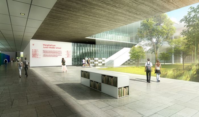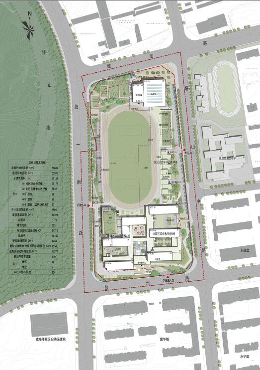 巧用地形,依势而建,观山瞰海。与“城市绿轴”南北呼应,与周边环境融为一体,着力打造全国一流水准的现代化、智慧型、花园式地区标杆学校。