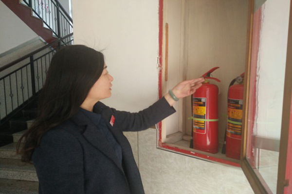 宣传周期间,鲸园小学丛滋芬校长带领安全小组排查校园设施安全隐患。