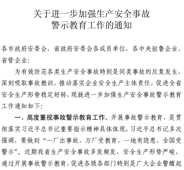 转发省安委会《关于进一步加强安全事故警示教育工作的通知》