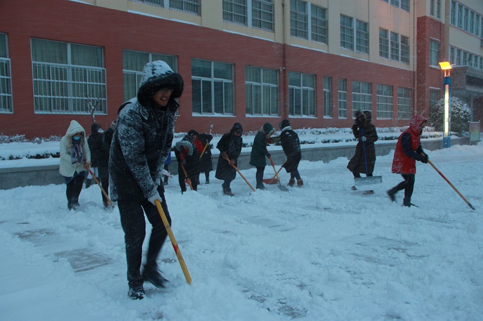 一场寒冷的大雪融化在老师们铲冰扫雪的热情之中,为学校活动的开展和师生的安全提供了保障。大家也用自己的实际行动凝聚着同一个愿望:为教育教学全方位服好务、尽好职,瑞雪后收获一个累累硕果的丰年!
